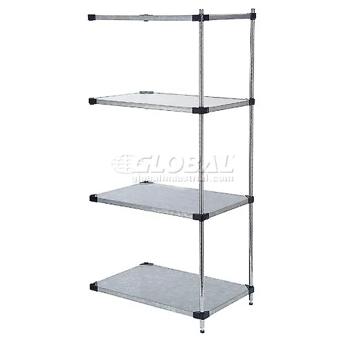 Nexel® 4 Shelf, Galvanized Steel Solid Shelving Unit, Add On, 60"W x 18"D x 74"H