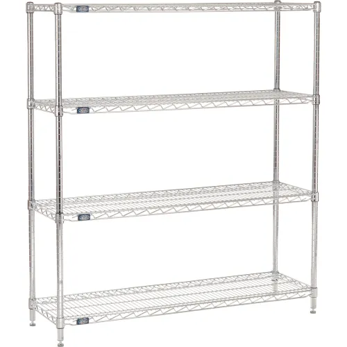 Nexel® 4 Shelf, Chrome Wire Shelving Unit, Starter, 48"W x 14"D x 63"H