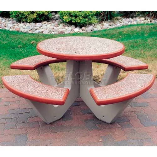 Wausau Tile® 66" Round Picnic Table, Concrete, Red