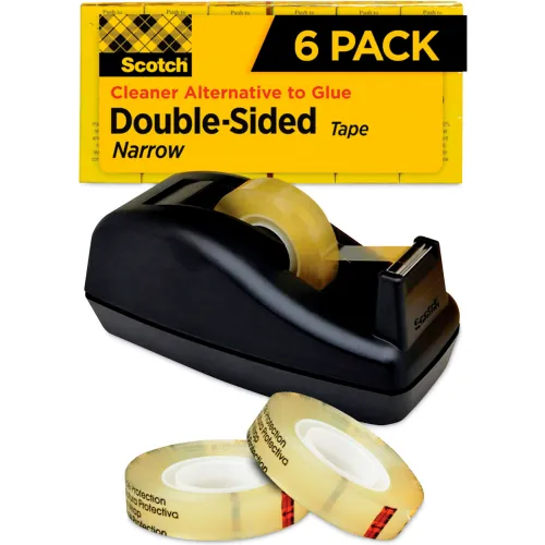 Scotch® 665 Double-Sided Tape with C40 Dispenser, 1/2" x 900", 6/Pack