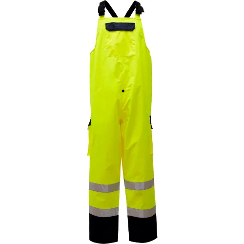 GSS Safety 6805 Class E Premium Bibs 2 Side Pockets 1 Cargo Pocket, Lime, S/M