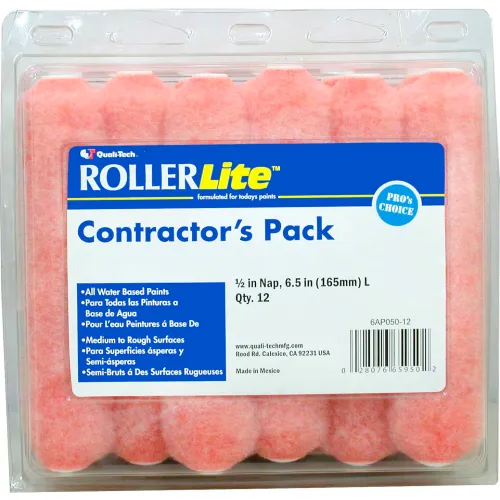 RollerLite 6" x 1/2" Pink Polyester Mini Roller Cover, 12/Pack 6/Case - 6AP050-12