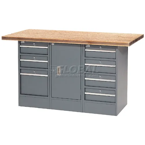 Global Industrial Workbench w/ Shop Top Square Edge, 7 Drawers & 1 Cabinet, 60"W x 30"D, Gray