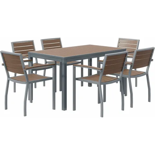 KFI Seating 7 Piece Outdoor Dining Set, Mocha w/ Silver Frame