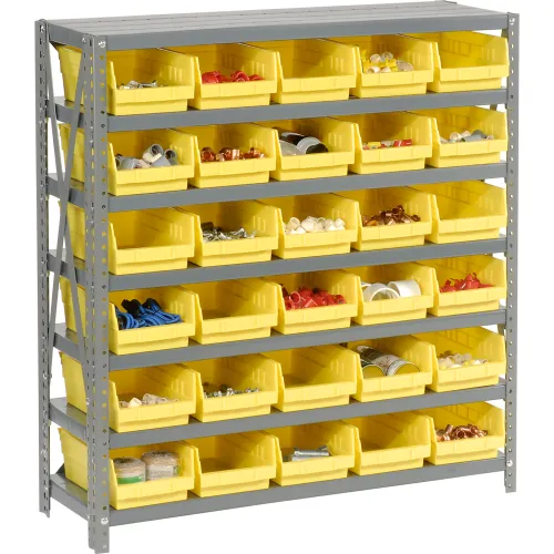 Global Industrial Steel Shelving with 30 4"H Plastic Shelf Bins Yellow, 36x18x39-7 Shelves
