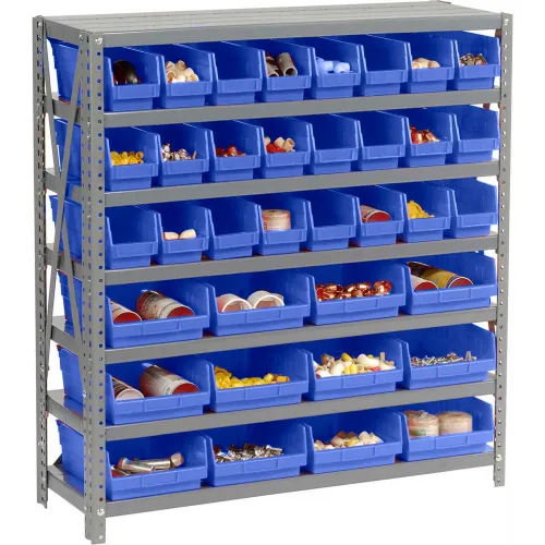 Global Industrial Steel Shelving with Total 36 4"H Plastic Shelf Bins Blue, 36x12x39-7 Shelves