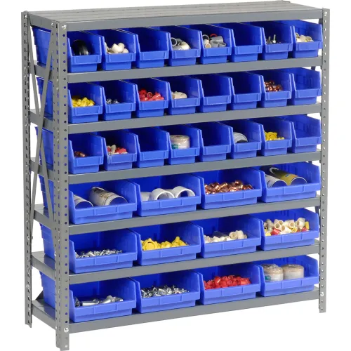 Global Industrial Steel Shelving with Total 36 4"H Plastic Shelf Bins Blue, 36x18x39-7 Shelves