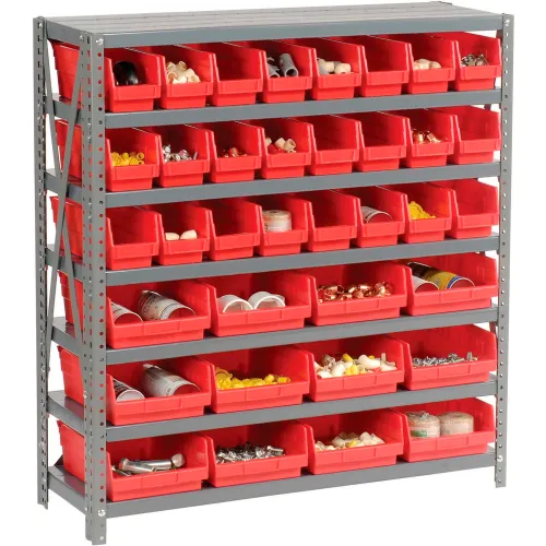 Global Industrial Steel Shelving with Total 36 4"H Plastic Shelf Bins Red, 36x18x39-7 Shelves