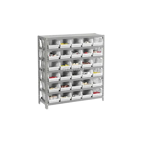 Global Industrial Steel Shelving with 30 4"H Plastic Shelf Bins Ivory - 36x12x39-7 Shelves