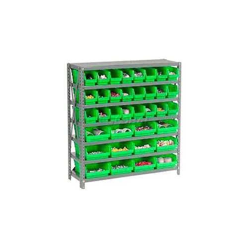 Global Industrial Steel Shelving - Total 36 4"H Plastic Shelf Bins Green, 36x12x39-7 Shelves