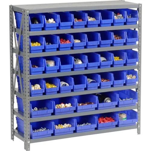 Global Industrial Steel Shelving with Total 42 4"H Plastic Shelf Bins Blue, 36x12x39-7 Shelves