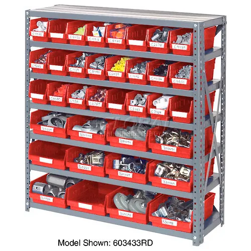 Global Industrial Steel Shelving with Total 42 4"H Plastic Shelf Bins Red, 36x12x39-7 Shelves