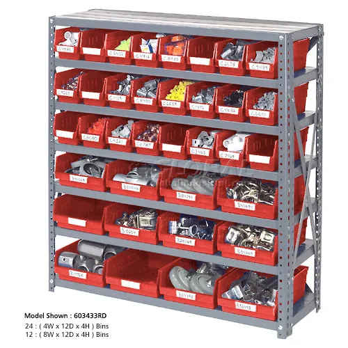 Global Industrial Steel Shelving with 48 4"H Plastic Shelf Bins Red, 36x18x39-7 Shelves