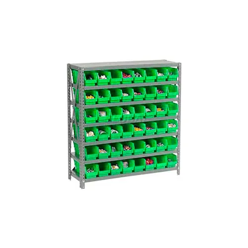 Global Industrial Steel Shelving with 48 4"H Plastic Shelf Bins Green, 36x12x39-7 Shelves