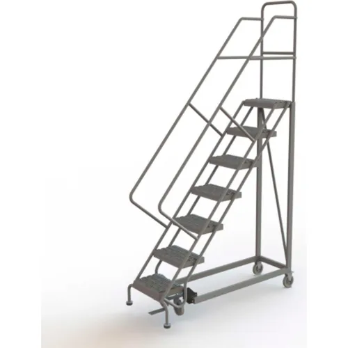 7 Step 16"W Steel Safety Angle Rolling Ladder, Grip Strut, Gray - KDEC107162