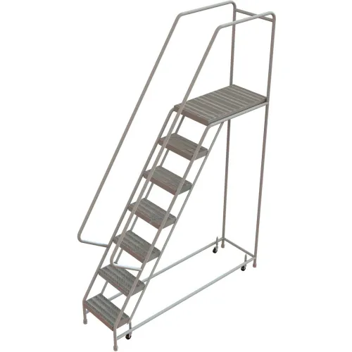7 Step Aluminum Rolling Ladder, 16"W Grip Tread, 21"D Top Step - WLAR107165-D4C