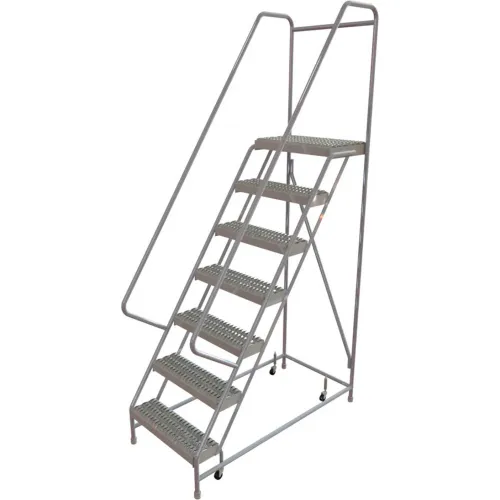 7 Step Aluminum Rolling Ladder, 24"W Grip Tread, 14"D Top Step - WLAR107245C