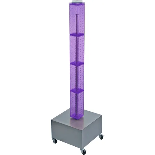Global Approved 700224-PUR 48" Pegboard Rolling Floor Display, 4-Sided, Purple Translucent ,1 Piece