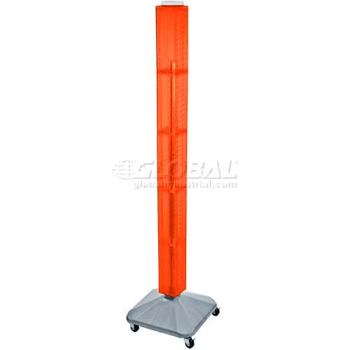 Global Approved 700226-ORG 60" Pegboard Rolling Floor Display, 4-Sided, Orange Translucent ,1 Piece
