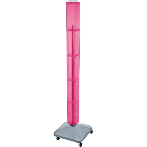 Global Approved 700226-PNK 60" Pegboard Rolling Floor Display, 4-Sided, Pink Translucent ,1 Piece