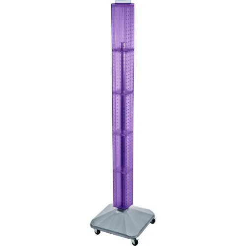 Global Approved 700226-PUR 60" Pegboard Rolling Floor Display, 4-Sided, Purple Translucent ,1 Piece