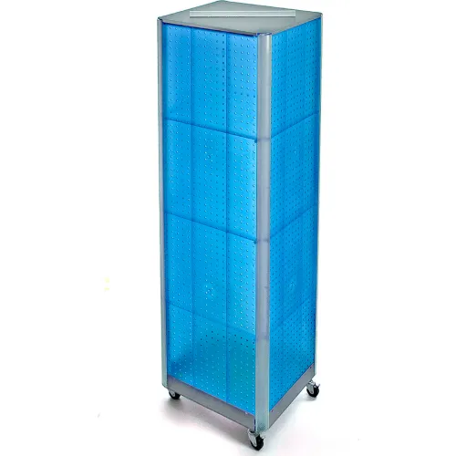 Global Approved 700406-BLU Four-Sided Spinning Pegboard Floor Display W/ Wheels, 16" x 60", Blue