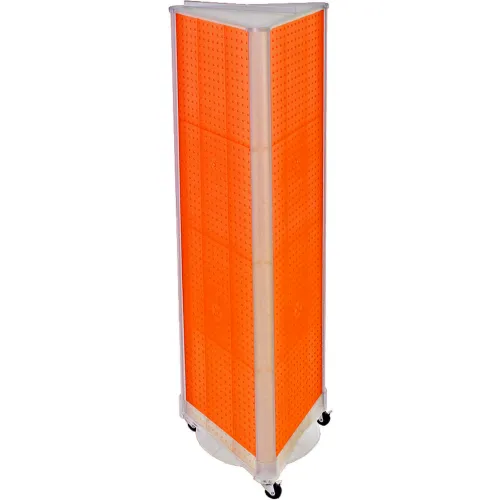 Global Approved 700451-ORG Three-Sided Spinning Pegboard W/ Wheels 16" x 60" Orange Opaque 1 Piece
