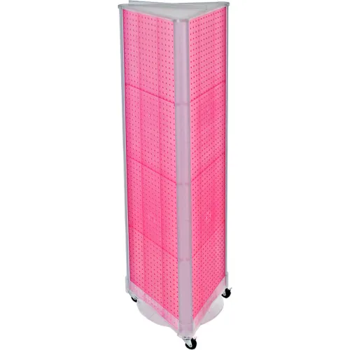 Global Approved 700451-PNK Three-Sided Spinning Pegboard W/ Wheels, 16" x 60", Pink Opaque ,1 Piece