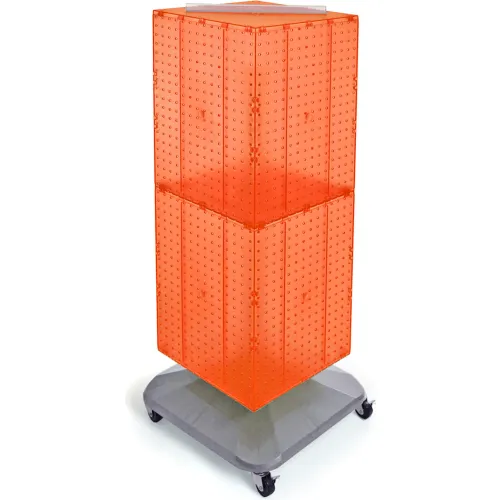 Global Approved 701436-ORG 4-Sided Interlocking Pegboard Floor Display, 14" x 40", Orange Opaque