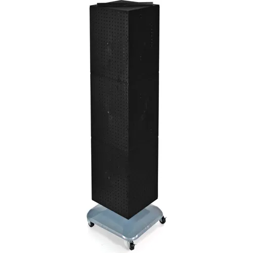 Global Approved 701465-BLK 4-Sided Interlocking Pegboard Floor Display W/ Wheels, 14" x 60", Black