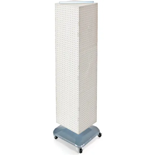 Global Approved 701465-WHT 4-Sided Interlocking Pegboard Floor Display W/ Wheels, 14" x 60", White