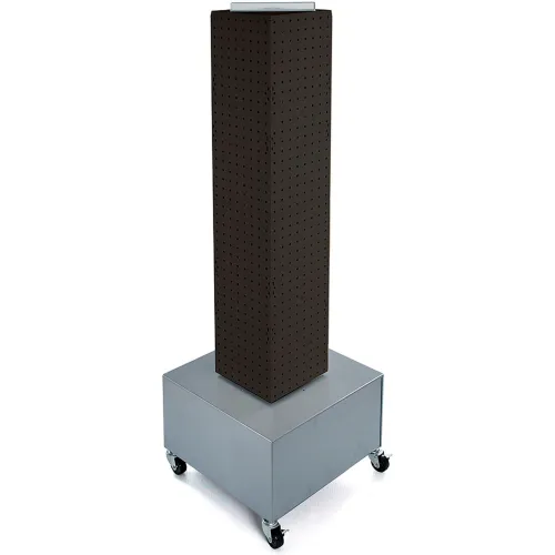 Global Approved 703386-BLK 4-Sided Interlocking Pegboard Display W/ Wheels, 8" x 40", Black Solid