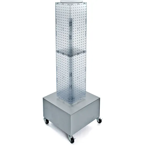 Global Approved 703386-CLR 4-Sided Interlocking Pegboard Display W/ Wheels, 8" x 40", Clear Opaque