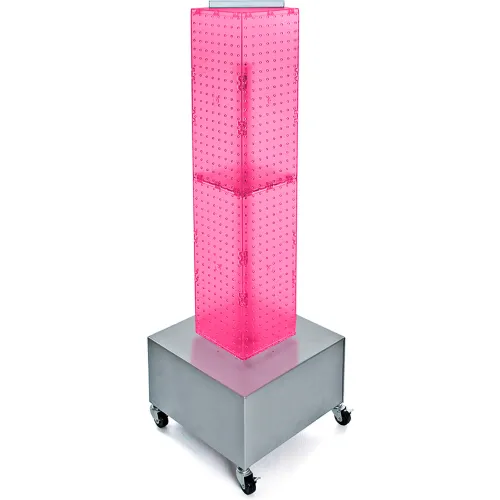 Global Approved 703386-PNK 4-Sided Interlocking Pegboard Display W/ Wheels, 8" x 40", Pink Opaque
