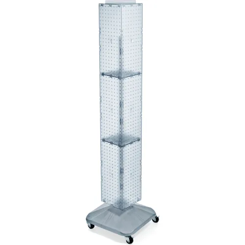 Global Approved 703390-CLR 4-Sided Interlocking Pegboard Display W/ Wheels, 8" x 60", Clear Opaque