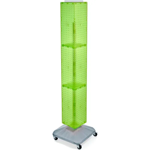 Global Approved 703390-GRE 4-Sided Interlocking Pegboard Display W/ Wheels, 8" x 60", Green Opaque