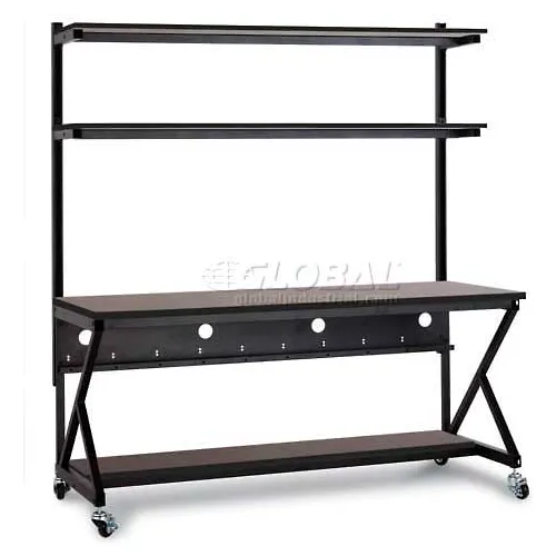 Kendall Howard 72" Performance 100 Series LAN Station with Half Bottom Shelf, African Mahogany