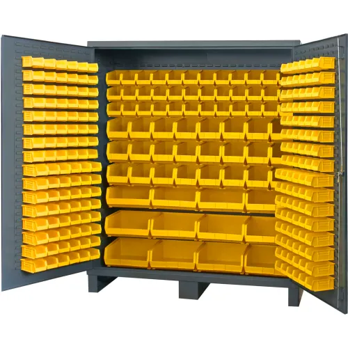 Durham Jumbo Bin Cabinet SSC-722484-BDLP-264-95 - 264 Yellow Hook-On Bins, 72"W x 24"D x 84"H