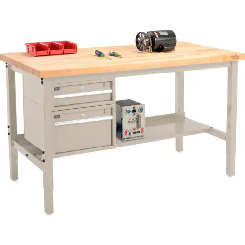 Global Industrial 72"W x 30"D Production Workbench - Birch Square Edge - Drawers & Shelf - Tan