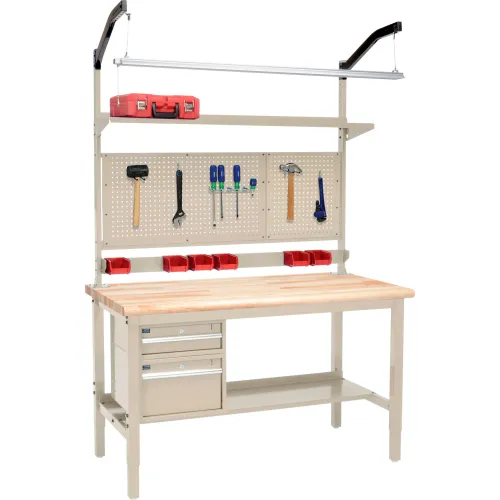 Global Industrial 72"W x 36"D Production Workbench - Maple Safety Edge Complete Bench - Tan