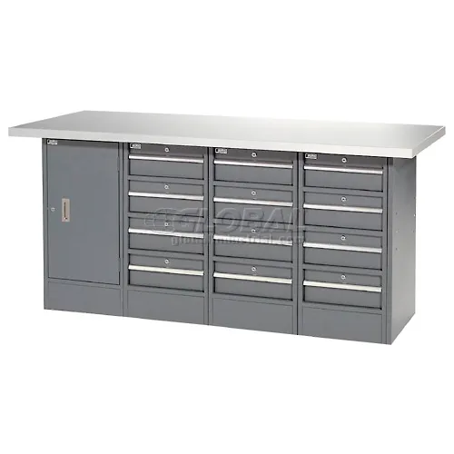 Global Industrial Workbench w/ Laminate Top, 12 Drawers & 1 Cabinet, 72"W x 24"D, Gray