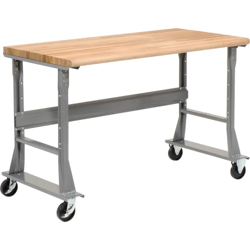 Global Industrial Mobile Workbench, 72 x 30", Flared Leg, Maple Butcher Block Safety Edge