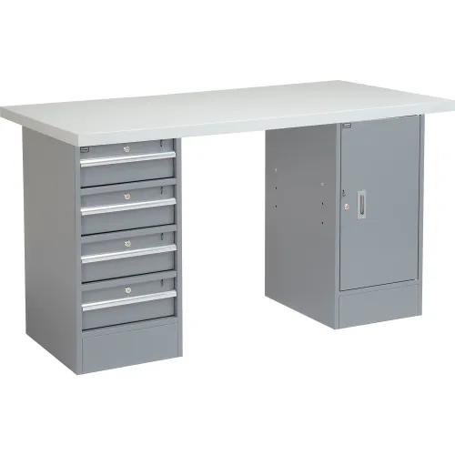 Global Industrial 72 x 30 Pedestal Workbench 4 Drawers & 1 Cabinet, Laminate Square Edge Gray