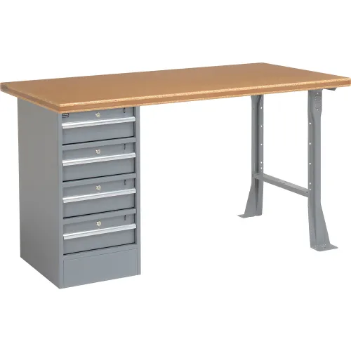 Global Industrial 72"W x 30"D Pedestal Workbench - 4 Drawers, Shop Top Safety Edge - Gray