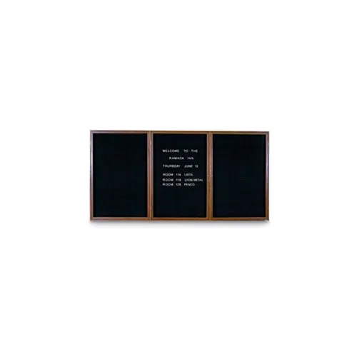 United Visual Products 72"W x 36"H 3-Door Indoor Illuminated Wood Enclosed Letter Board