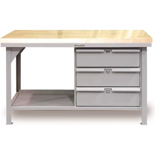 StrongHold Storage Workbench W/ 3 Drawers & Shelf, Maple Square Edge, 72"W x 36"D, Gray
