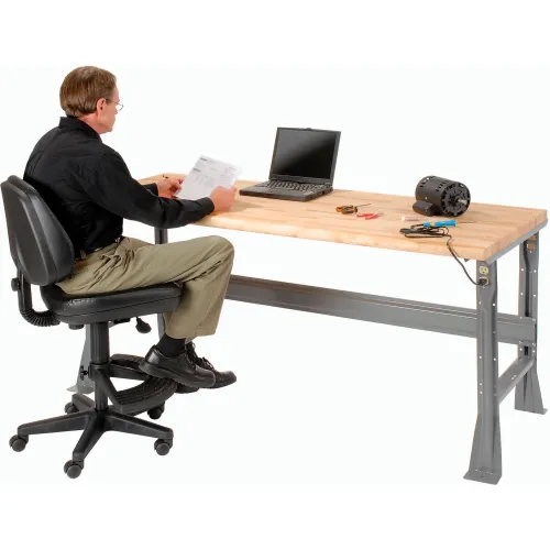 Global Industrial Workbench with Flared Leg, 72 x 36", Maple Butcher Block Safety Edge