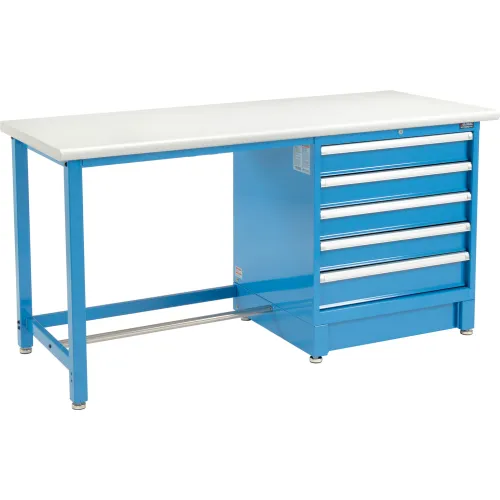 Global Industrial 72"Wx30"D Modular Workbench W/ 5 Drawers, Plastic Laminate Safety Edge, Blue