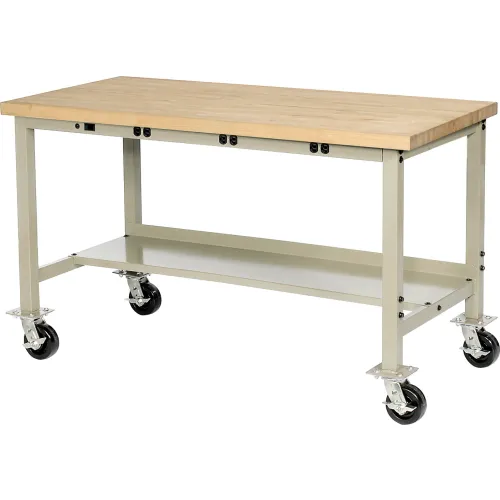 Global Industrial Mobile Workbench, 72 x 36", w/Outlets, Maple Butcher Block Square Edge, Tan
