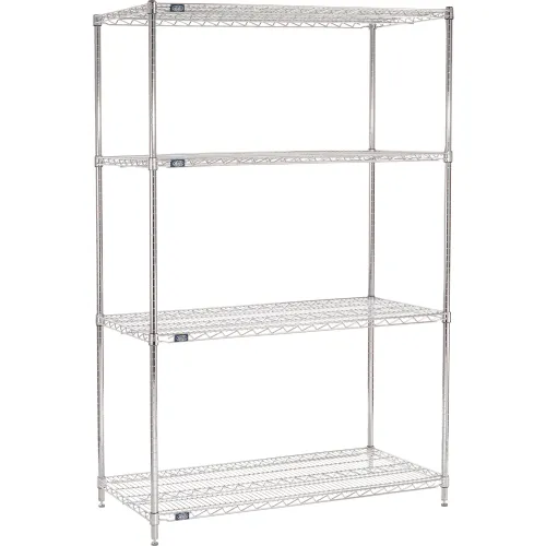 Nexel® 4 Shelf, Chrome Wire Shelving Unit, Starter, 48"W x 24"D x 74"H